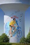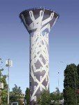 Sur châteaux d'eau, aéroréfrigérants, cheminées industrielles, la peinture monumentale, bien plus qu'une décoration ou qu'un simple visuel esthétique, le trompe l'œil participe à transformer l'ensemble de la construction en une œuvre artistique unique : architecture et peinture ne font plus qu'un, volumes et couleurs s'interpénètrent.