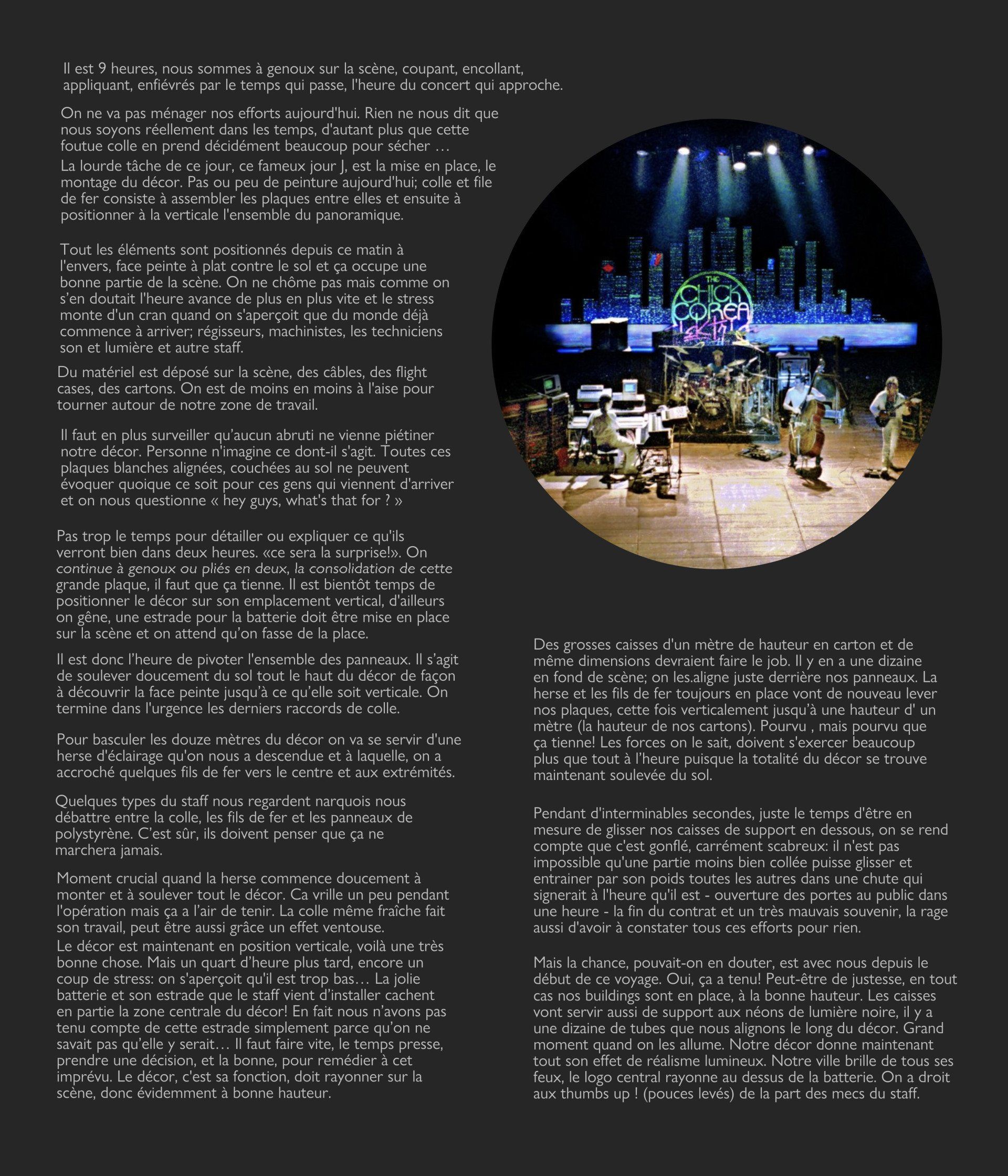 Décor scénographique pour Chick Corea Elektric Band (fluo et lumière noire) Hong Kong 1986
