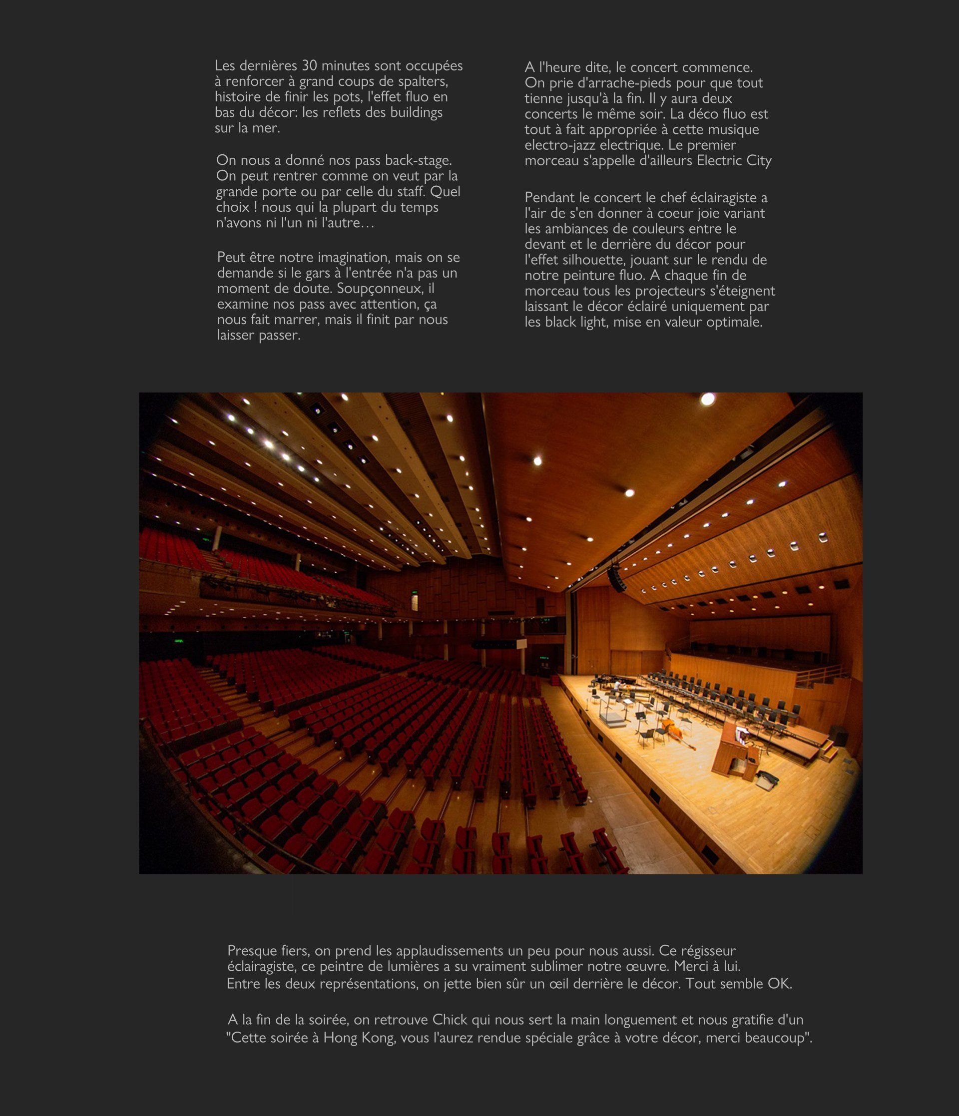 La réalisation de ce décor scénographique en peinture fluo restera un des moments les plus fort du parcours de Frédéric Gracia.