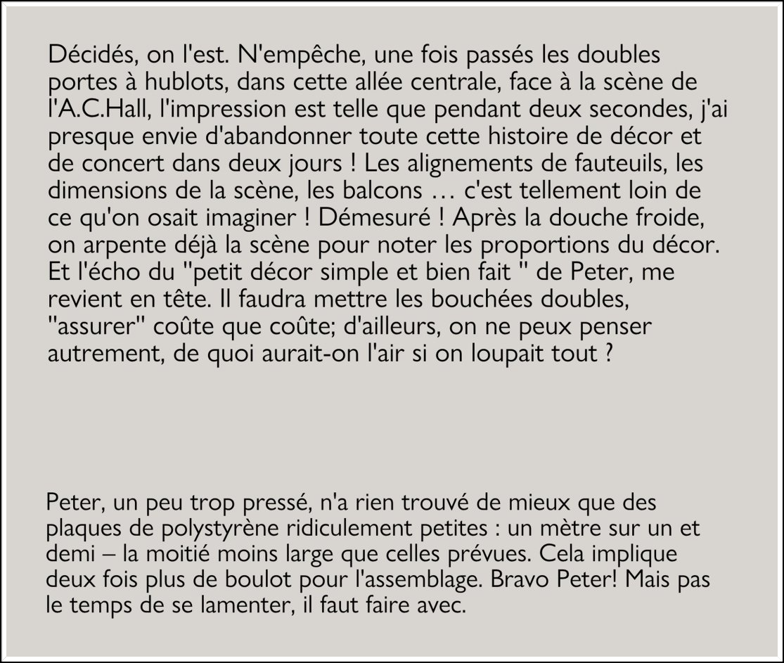 autant de détails qui ont pu rendre ces quelques jours inoubliables et le moment du concert quasi-magique.